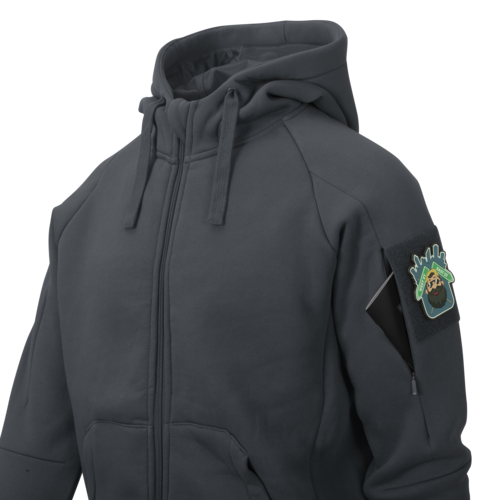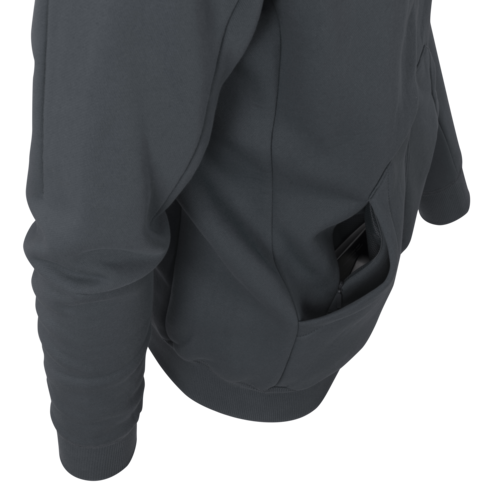 URBAN TACTICAL HOODIE LITE® to lekka, klasyczna bluza z kapturem zapinana z przodu na zamek. Prosty krój, niskoprofilowy oraz zastosowanie elastycznego materiału sprawi, że bluza ta wręcz idealnie nadaje się do działań miejskich. Dwie klasyczne kieszenie z przodu nie tylko pomieszczą rzeczy które chcemy mieć łatwo i szybko dostępne, ale także mogą posłużyć do ogrzania dłoni w chłodniejsze dni. Dodatkowo, wewnątrz prawej kieszeni znajduje się ukryta kieszonka zapinana na zamek. Dwie wewnętrzne siatkowe kieszenie bez problemu zmieszczą portfel czy dokumenty, skutecznie zabezpieczając je przed kradzieżą bądź zgubieniem. Na lewym znajduje się ukryta kieszeń z zamkiem specjalnie wkomponowanym w jeden ze szwów.